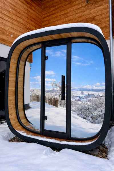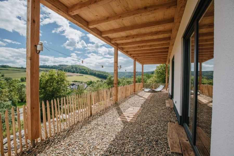 - moderne Außensauna mit Blick auf das Tal