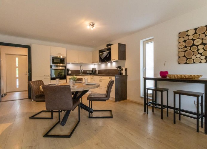 - Offene Küche mit großem Esstisch