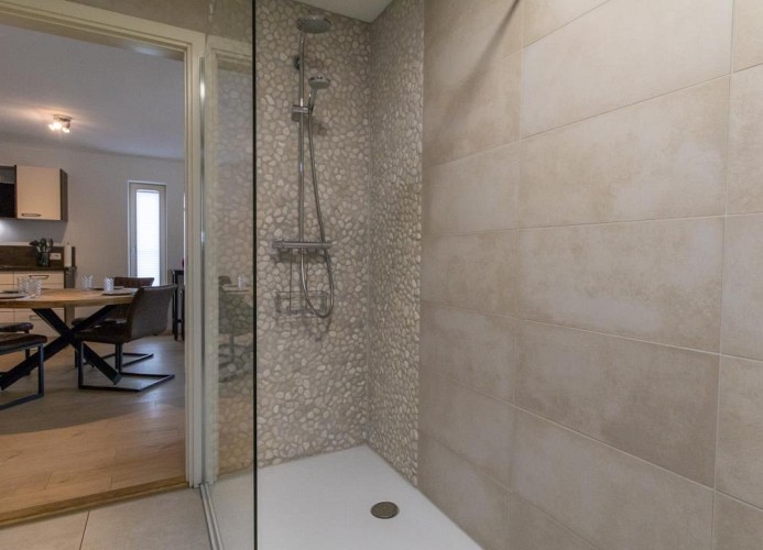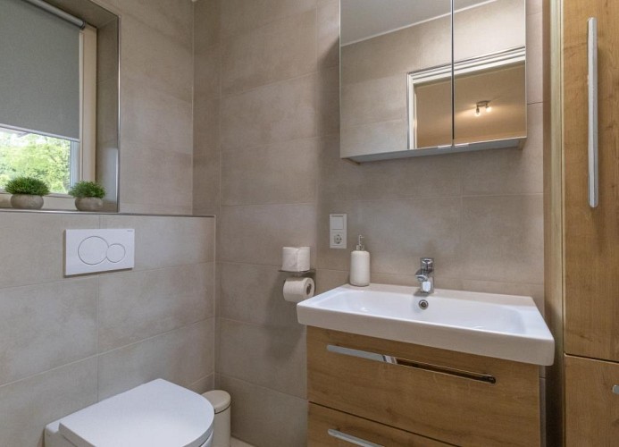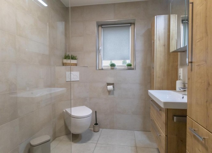 - Zwei moderne Badezimmer mit bodengleichen Duschen und WC