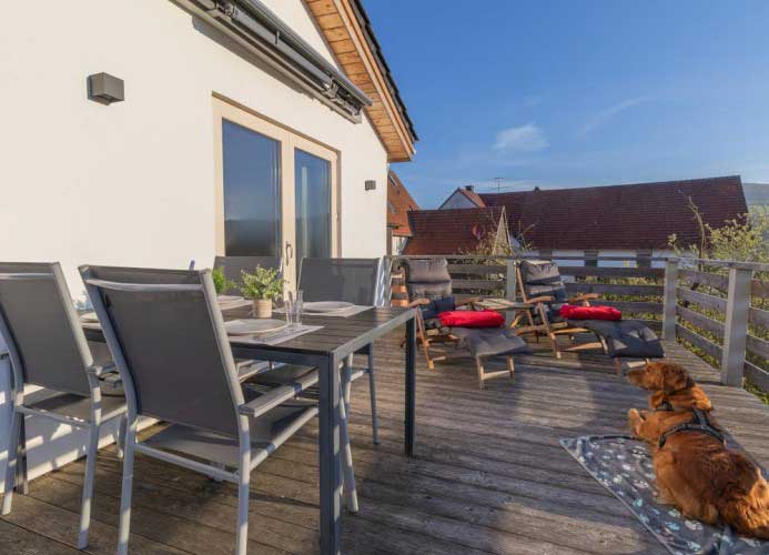 Alle unsere Unterkünfte sind modern ausgestattet und renoviert. Außerdem sind bei unseren Ferienwohnungen Waldblick & Bergblick Hunde herzlich willkommen.