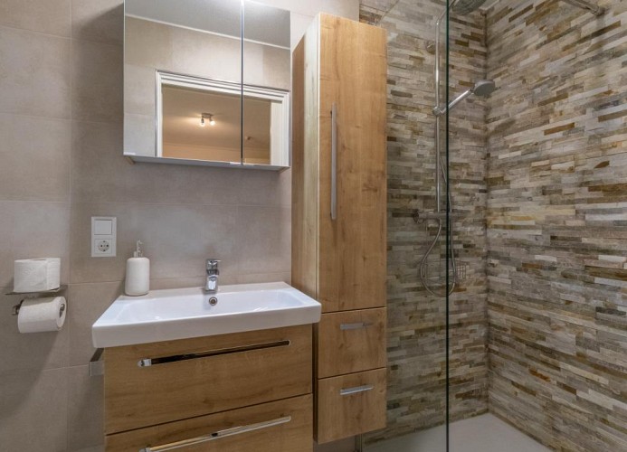 - Zwei moderne Badezimmer mit bodengleichen Duschen und WC
